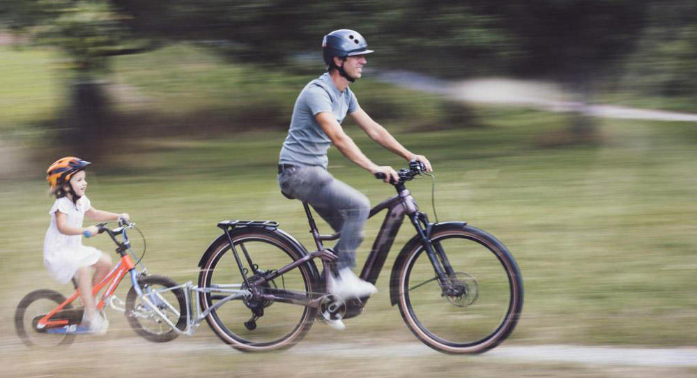 Andar de bicicleta sozinho ou ser levado pela cidade é o lema da FollowMe. Com o conjunto completo de engate duplo Follow Me, você tem a possibilidade de rebocar seu filho com segurança no trânsito ou deixá-lo andar de bicicleta sozinho, longe do tráfego perigoso.